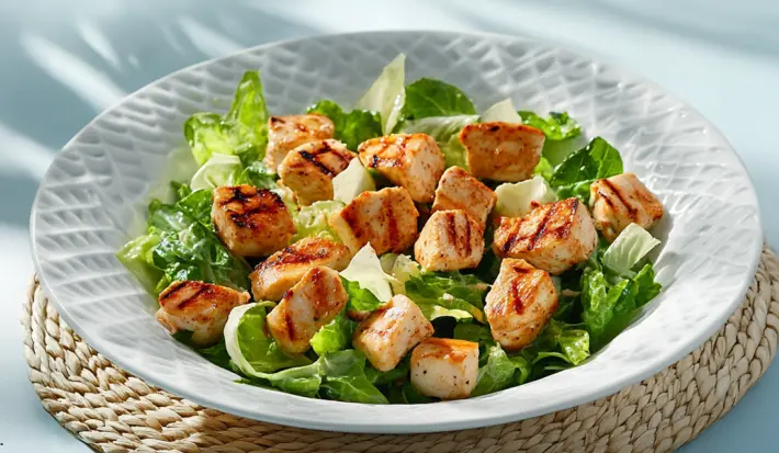 Si estás buscando una receta fresca, saludable y llena de sabor, esta ensalada César de pollo casera es ideal para ti. Perfecta como plato principal o como acompañamiento en almuerzos y cenas, su combinación de pollo dorado, aderezo cremoso y crujientes crutones hace de cada bocado una delicia.