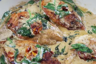 Filete de Pollo a la Toscana con Espinacas y Tomate